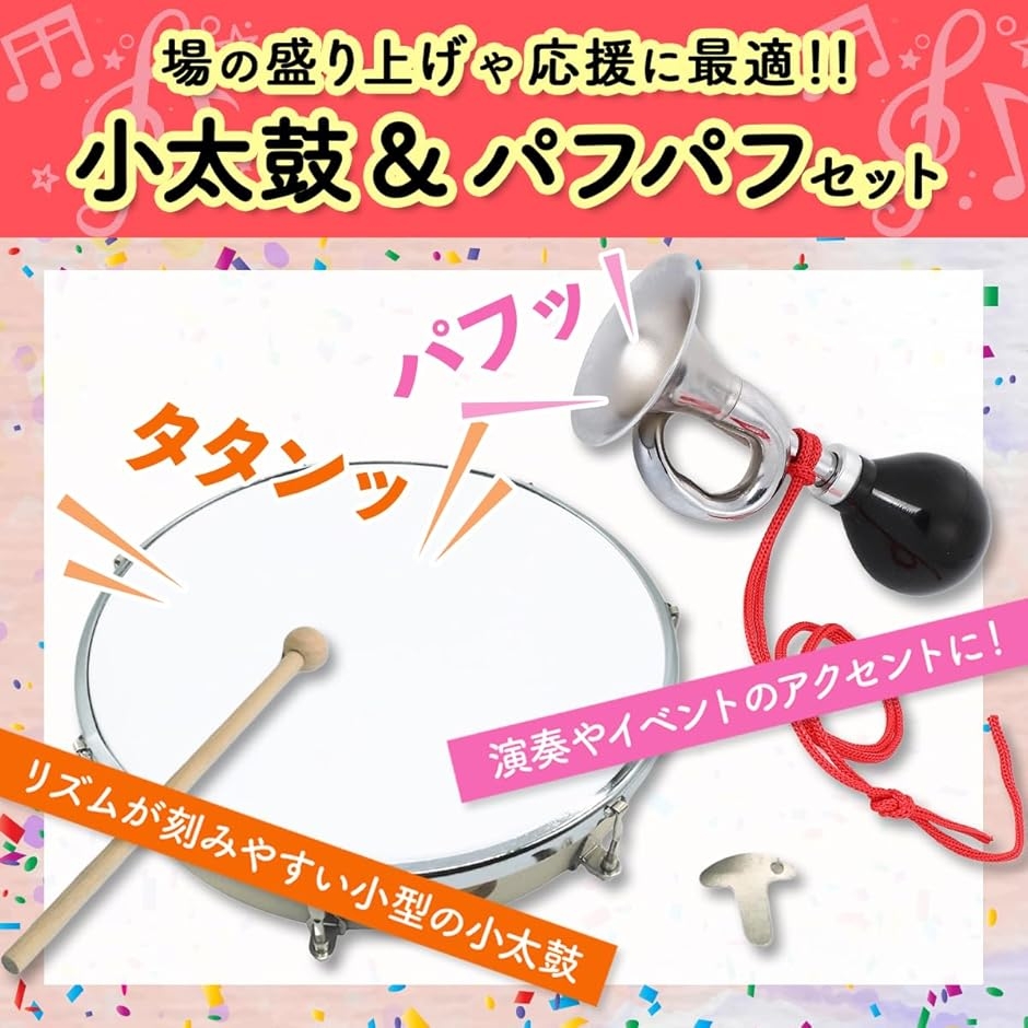 太鼓 パフパフラッパ 応援 楽器 体操 運動会 発表会 おもちゃ 小太鼓 自転車 (太鼓 25cm + パフパフラッパ セット)