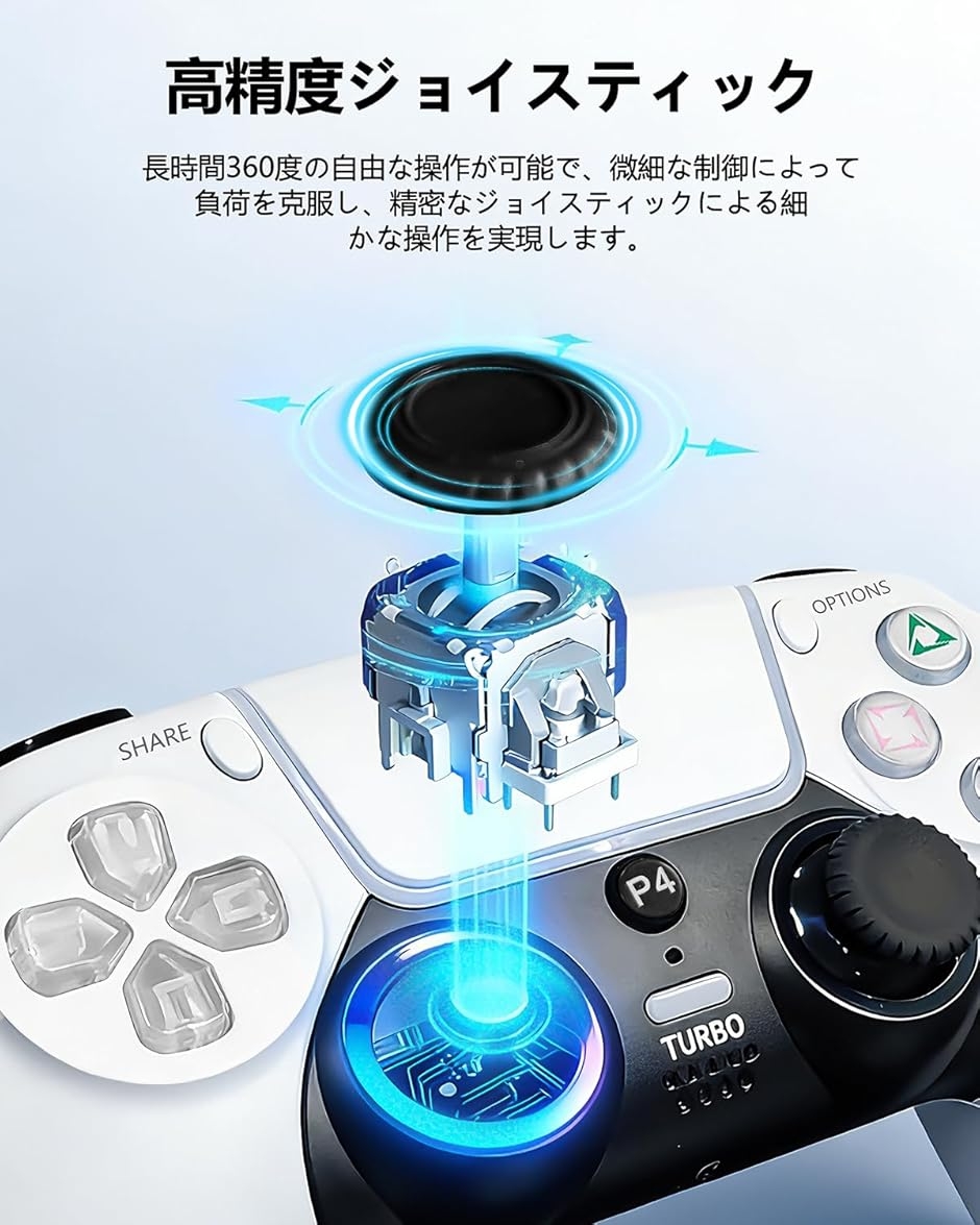 Ps4コントローラー pc 2026年新版 大容量バッテリー ブルートゥース 無線/有線接続 6軸ジャイロセンサー機能 (ホワイト)