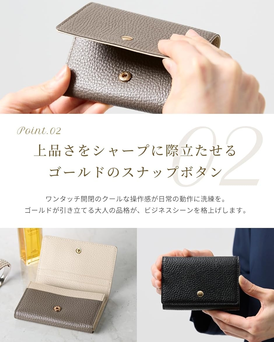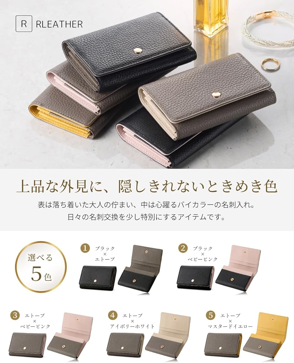 「ときめきを秘めた、上質なバイカラーの名刺入れ」表は落ち着いた大人の佇まい、中は心躍るバイカラーの名刺入れ(名刺ケース)。