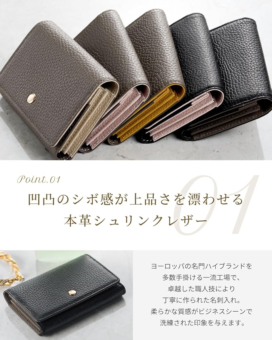 外見はシックでエレガントな印象を与えながら、内側に隠しきれないときめき色を忍ばせ、日々の名刺交換を少し特別な瞬間に変えるカードケースです。
