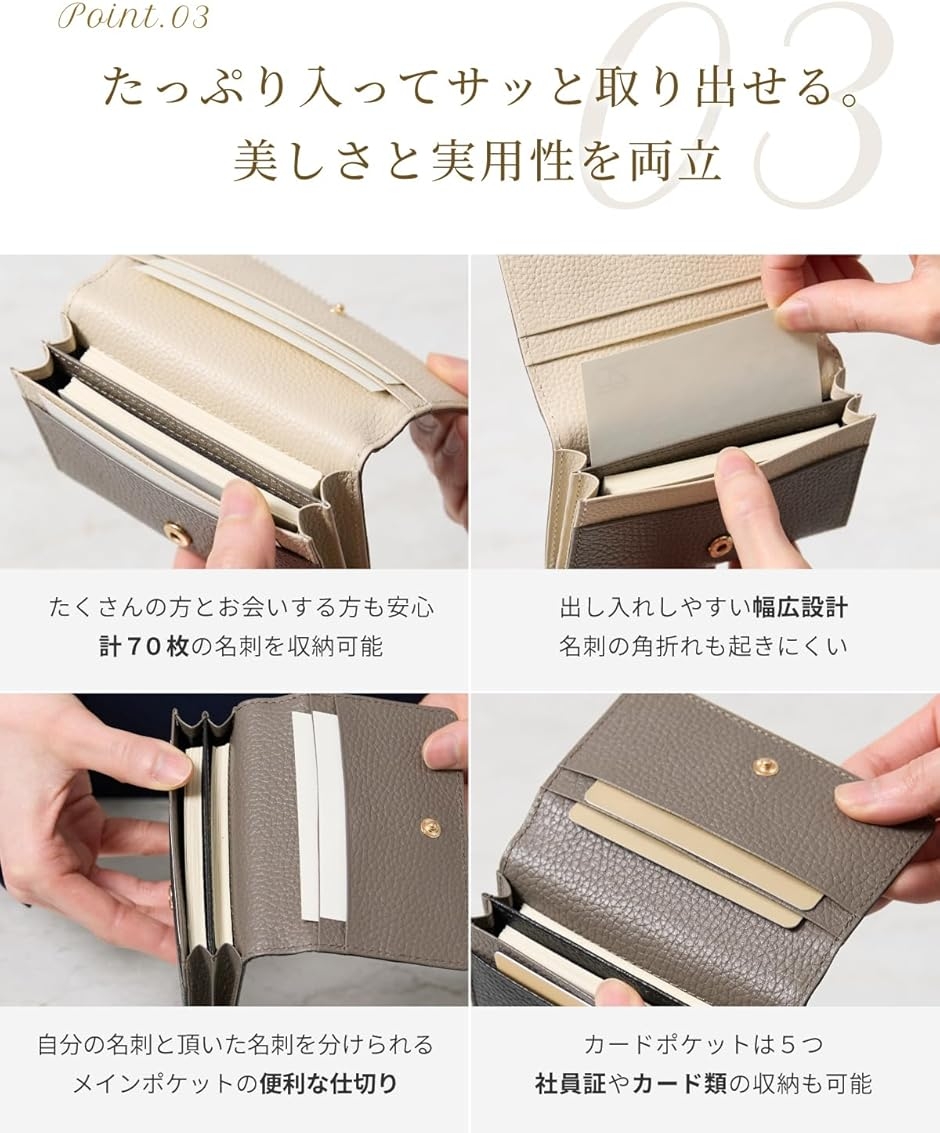名刺入れ レディース 本革 シュリンクレザー バイカラー 大容量 70枚収納 カードケース 5ポケット (エトープxアイボリーホワイト)