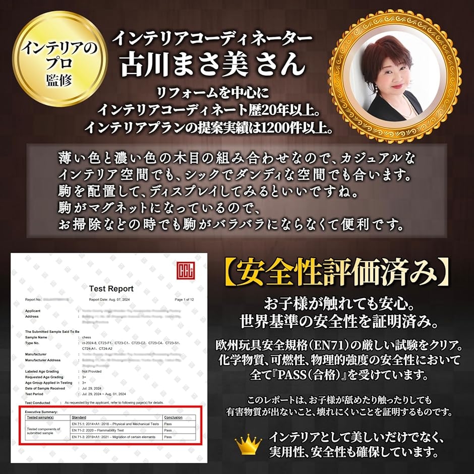 チェス インテリアコーディネーター監修 ボード 盤 駒 セット 木製 折りたたみ式 ルールブック付属 EN71 磁気 (Sサイズ)