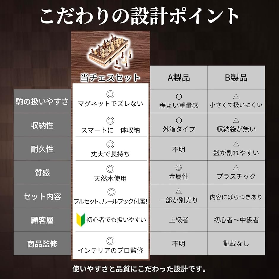 初心者にも安心なチェスセットとして人気です。