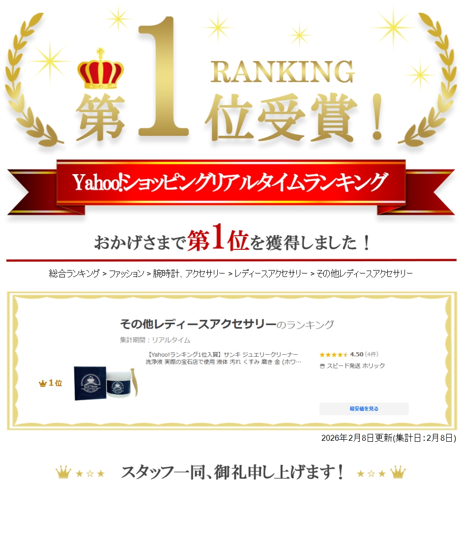 【Yahoo!ランキング1位入賞】サンキ ジュエリークリーナー 洗浄液 実際の宝石店で使用 液体 汚れ くすみ 磨き 金 (ホワイト)