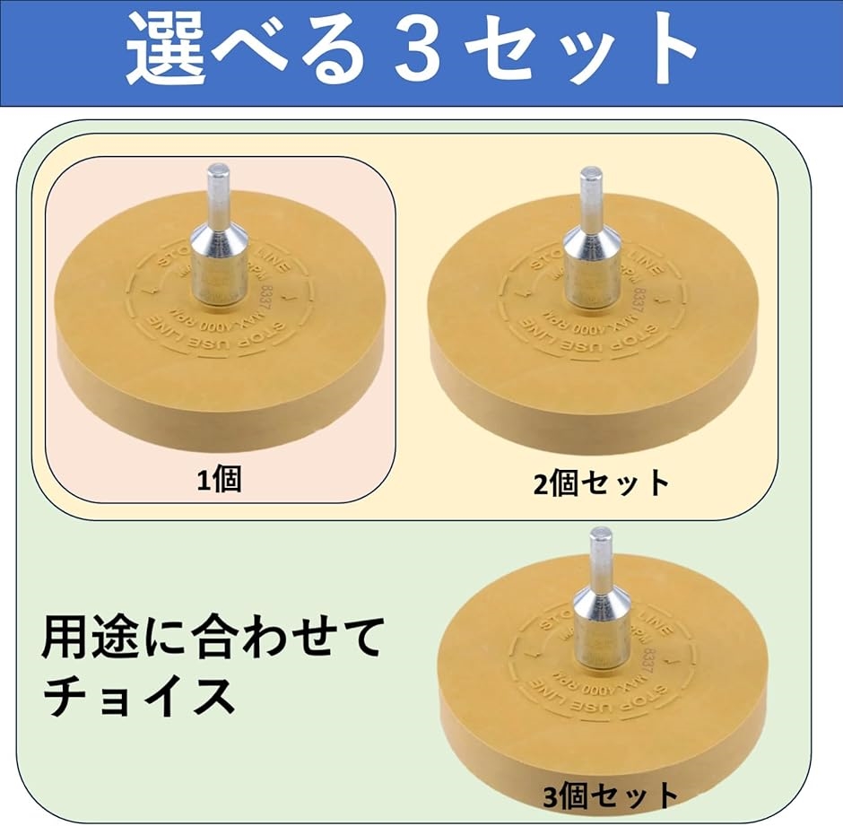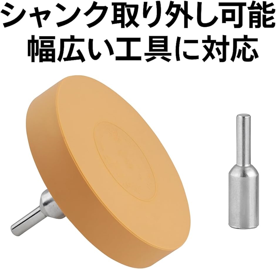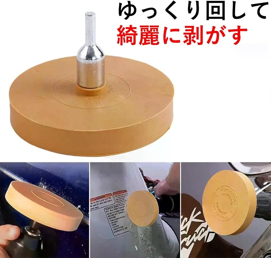 電動ドリルに取り付けて、頑固なステッカーやシールを剥がすことができるゴムトレーサーです。
