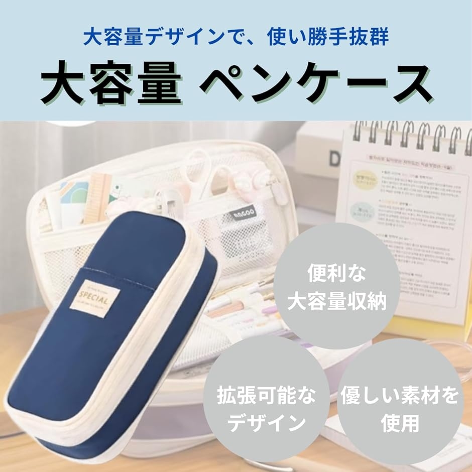 ペンケース 大容量 おしゃれ 筆箱 多機能 ポーチ ふでばこ 高校生 中学生 小学生 女の子 男の子 子供 収納 (ブルー)