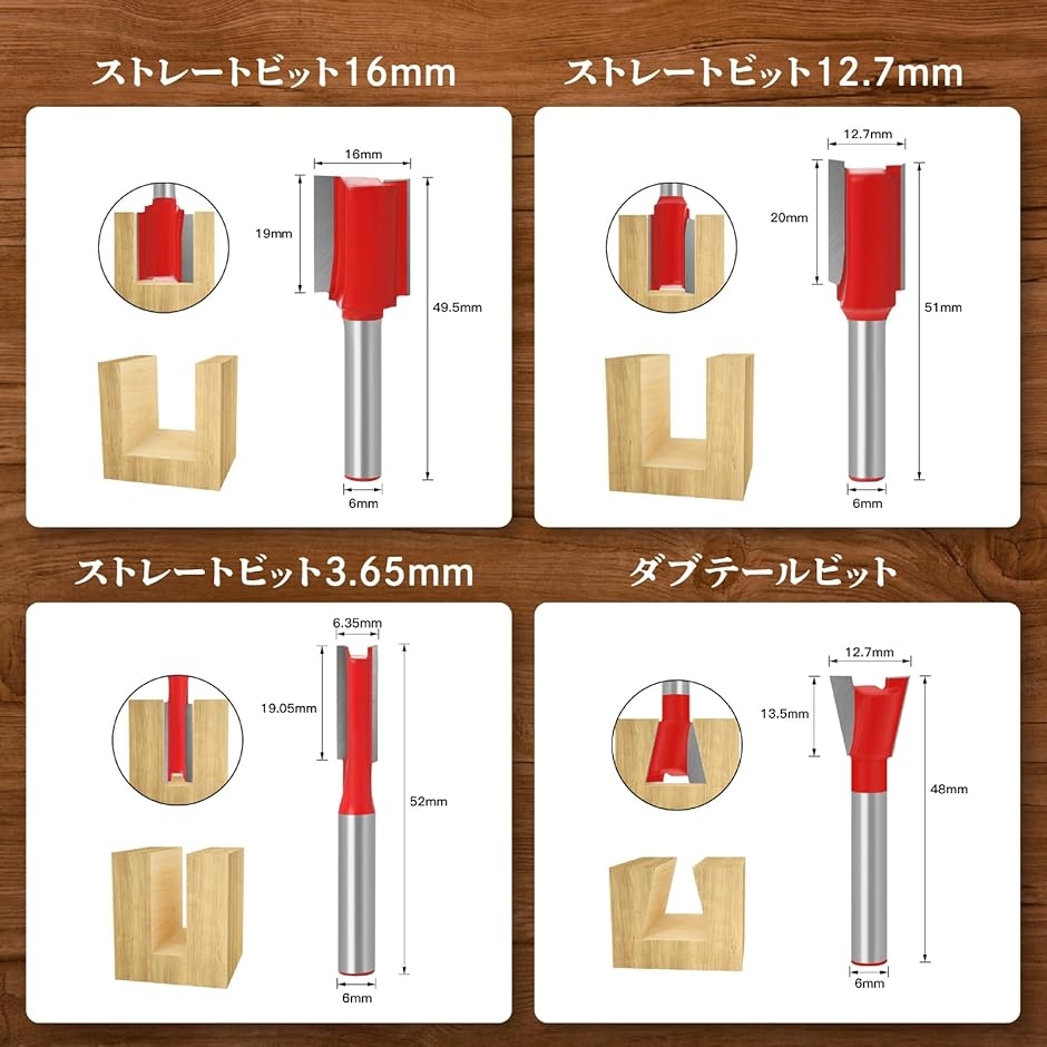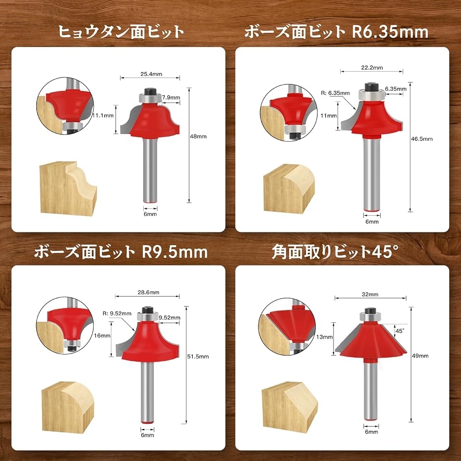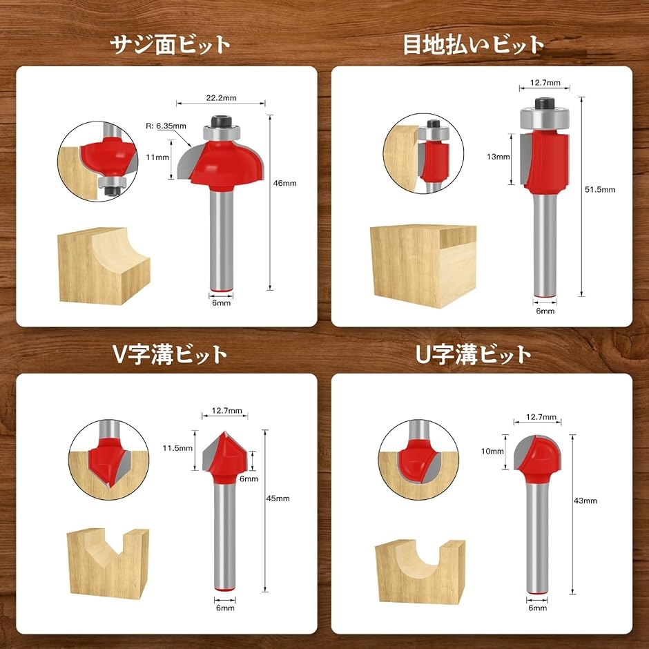 【Yahoo!ランキング1位入賞】トリマービットセット 6mm軸 12本組 超硬刃 木工用 ルータービット 面取り 溝ほり 彫刻 木材加工