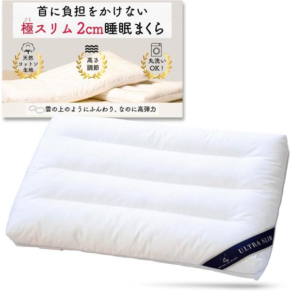 極スリム2cm 睡眠まくら ”低さ”と”寝心地”を追求 首や肩の負担を減らす 枕 低め 低い枕 薄い枕 マクラ 睡眠枕 (40x60cm)