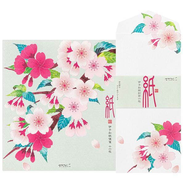 レターセット 春柄 シルク 桜柄 81021/81022 (14) 便箋16枚(2柄)・封筒6枚 ミドリ 「紙」シリーズ 伊予和紙