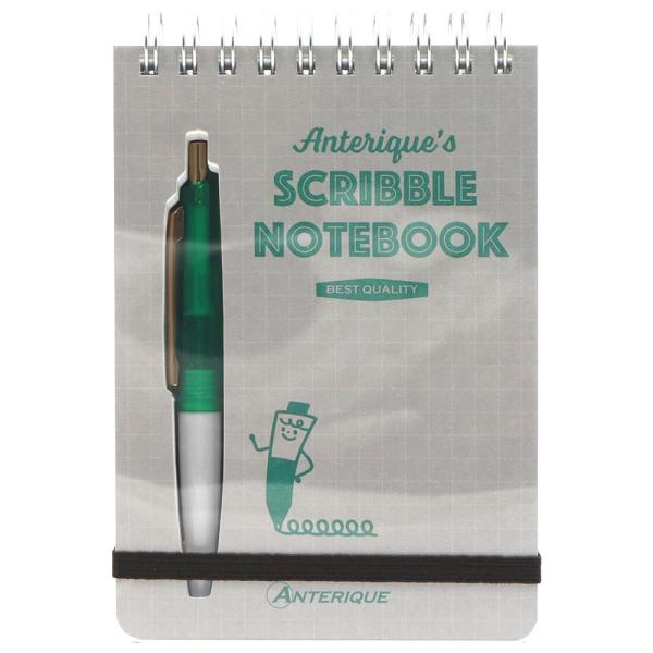 アンテリック ボールペン付き5mm方眼ミニノート白地 ボールペン:グリーン ME7R-G ゴムバンド付 ANTERIQUE