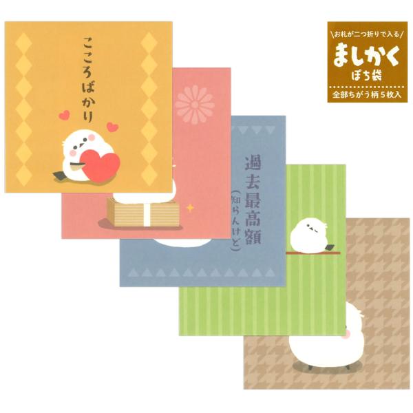 パインブック ましかくぽち袋 シマエナガ 5枚入(5柄/5色×1枚) S513013 二つ折りのお札が入ります PINE BOOK