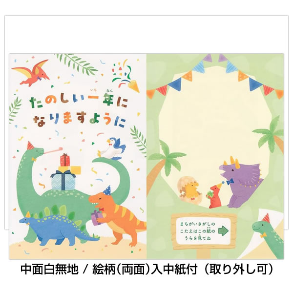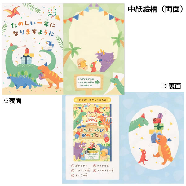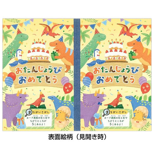 バースデーカード 遊べるカード 誕生日 間違い探し 恐竜1 1816301 中紙(両面絵柄)付 二つ折り エヌビー社 NB Birthday Card グリーティングカー