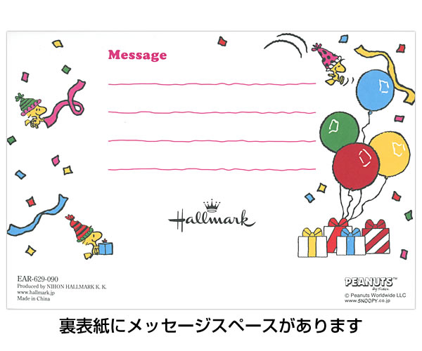 カードを開くバースデーカードと一緒にスヌーピーの兄弟たちが誕生日を賑やかに祝福してくれる、二つ折りバースデカードです。