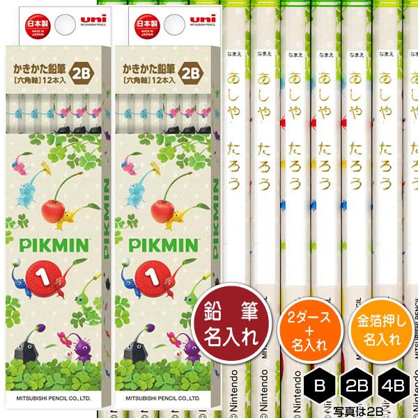 鉛筆2ダースと金箔押し名入れのセット品 三菱鉛筆 ピクミン 5652 6角軸 硬度4種(B・2B・4B) 名入れ1氏名(1書体)のみ かきかたえんぴつ