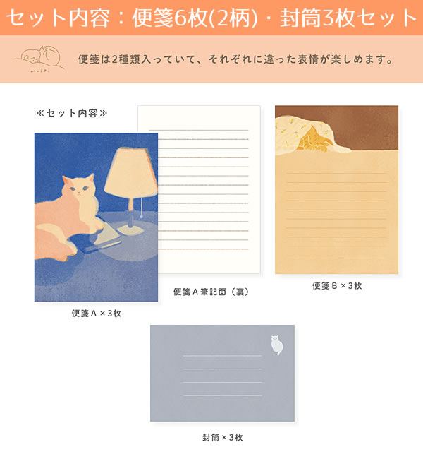 mula レターセット つづきはまた明日 MULS-02 (2) 便箋6枚(2柄)・封筒3枚 リュリュ/RYU-RYU