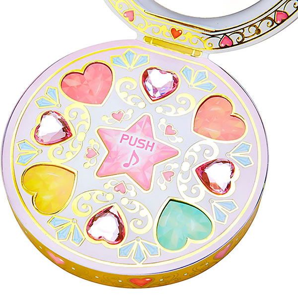 ボタンを押すと4個のハートがカラフルに光り、「HAPPY BIRTHDAY TO YOU」のメロディーや、鏡にちなんだメッセージが、キラキラの効果音とともに流れます。(音源は4種類あります)