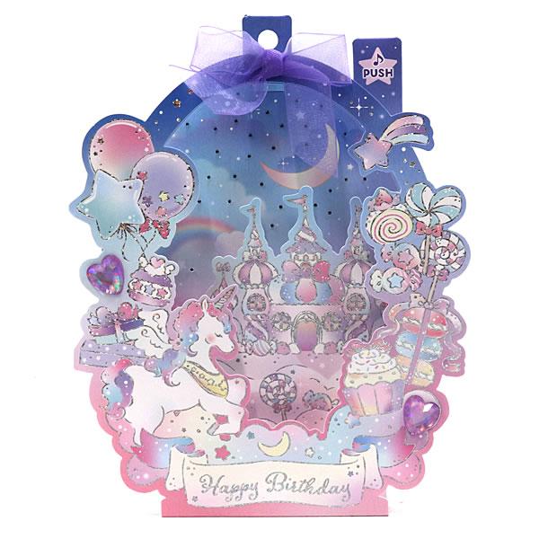 バースデーカード ライト付きメロディカード ユニコーン P187/878731 サンリオ 立体カード お誕生日お祝い 電池交換可能