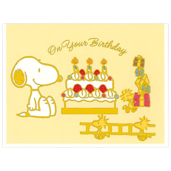 バースデーカード 二つ折りポップアップカード スヌーピー ケーキとはしご EAR-816-025 ホールマーク 立体カード Birthday Card グリーティングカー