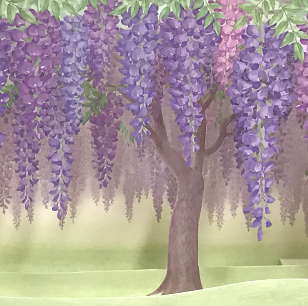 美しく彩色された藤棚に、繊細なレーザーカット加工が施されています。
