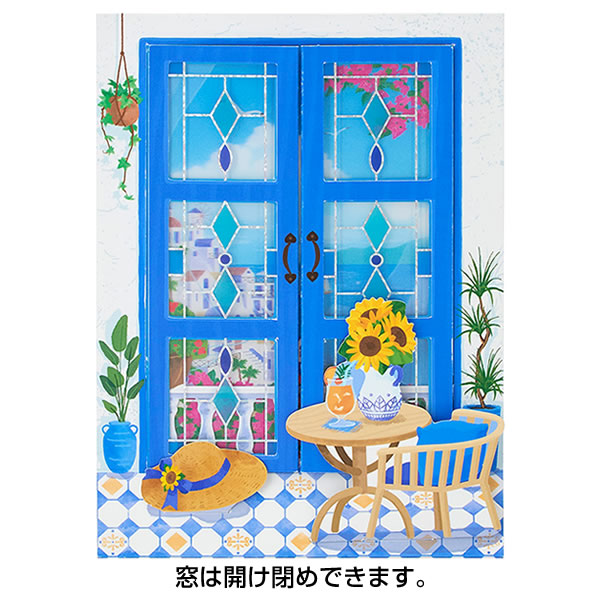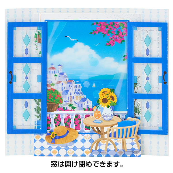 海のある街を見渡せる窓辺を表現した立体カードです。