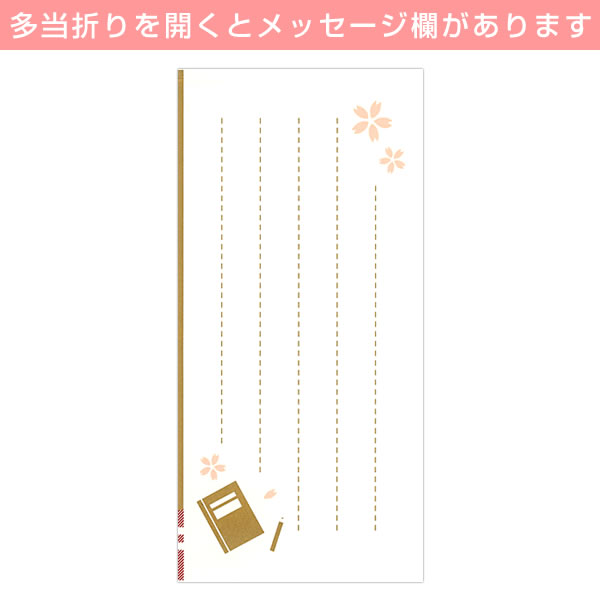 多当折りを開いた中面にメッセージ欄が付いていますので、お祝いのメッセージを添える事ができます。