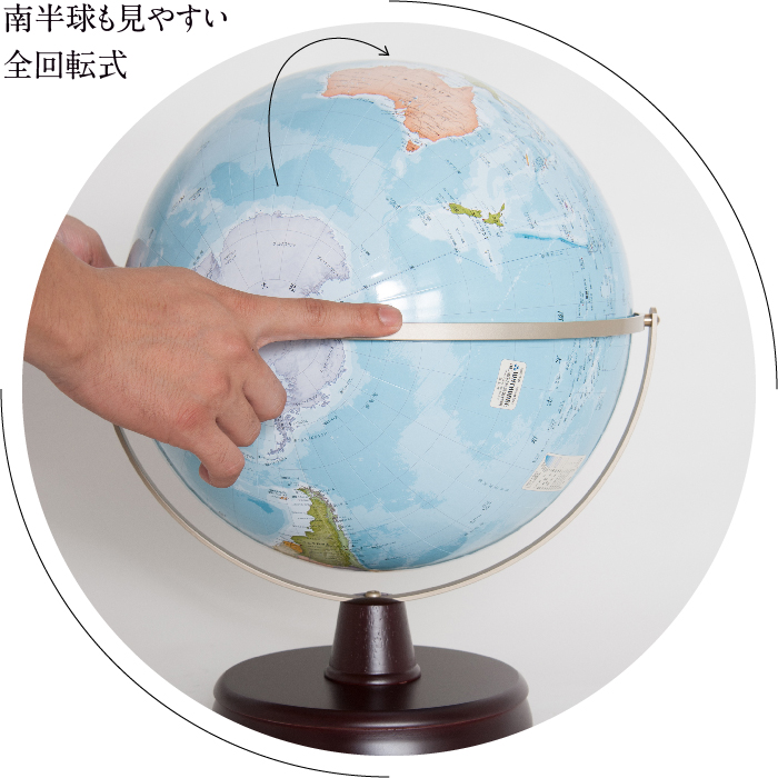 上下左右360度回転できる、全回転式なので、見たい国にあわせて、お好きな角度で楽しめます。