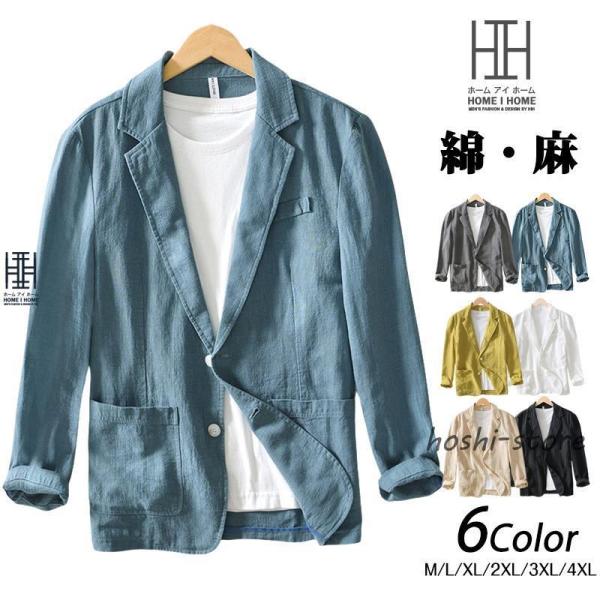 リネンテーラード ジャケット メンズ リネンジャケット 無地 綿 麻 サマージャケット オフィスカジュアル ブレザー 大きいサイズ 涼しい ビジネス 春 夏 秋