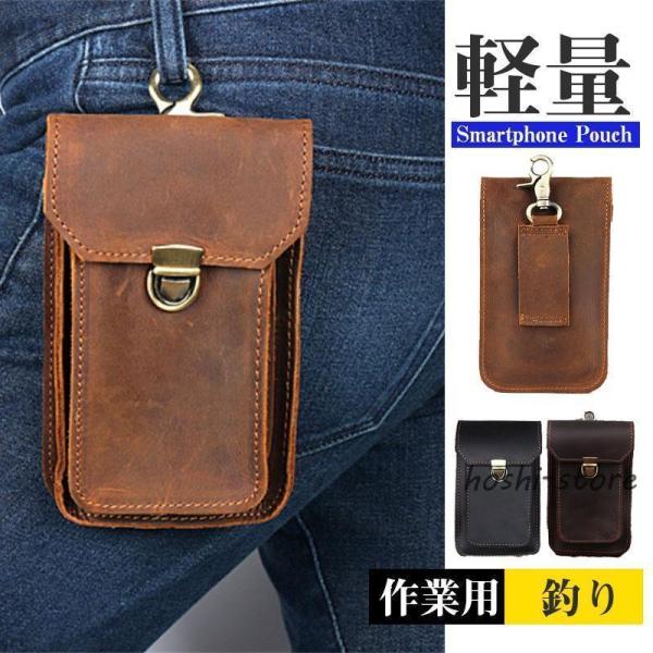 牛革 スマホポーチ ベルトポーチ メンズ 本革 カラビナ付 ウェストポーチ ヒップバック ミニ 大容量 小物入れ 仕事 鞄 収納 軽量 プレゼント
