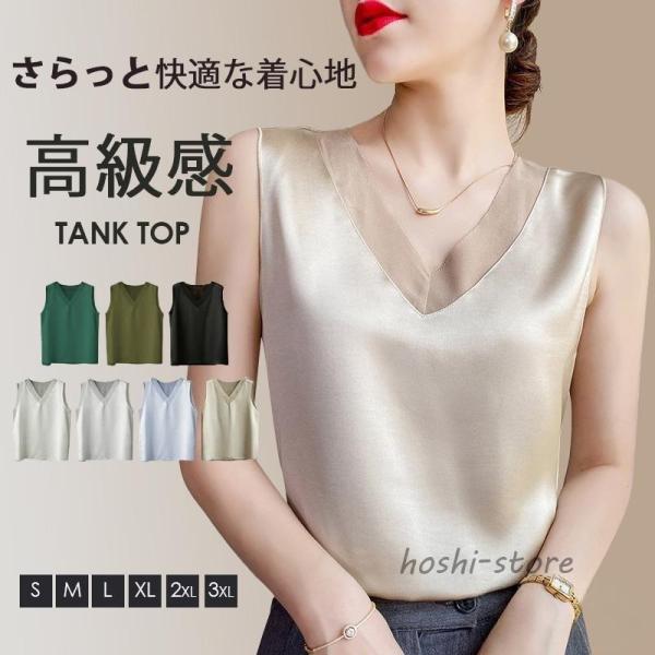 タンクトップ シルク キャミソール レース ブラウス レディース Vネック インナー 大きいサイズ ブラウス ノースリーブ トップス シルクサテン ルームウェア