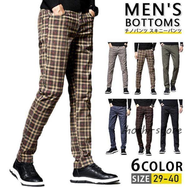 チノパンツ メンズ スキニーパンツ ゴルフウェア チェックパンツ ボトムス チェック柄 チノパン パンツ