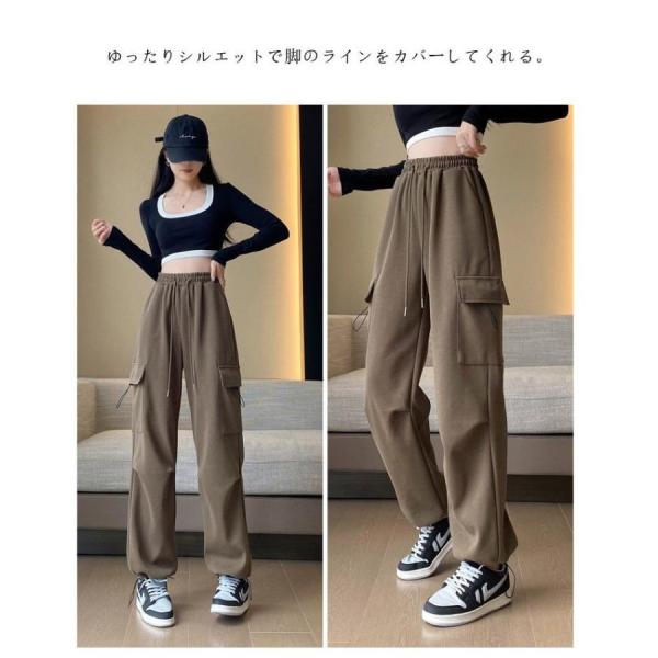カーゴパンツ レディース ミリタリーパンツ 裏起毛パンツ ワイド ウエストゴム ヒップホップ ダンス衣装 カジュアル ゆったり 美シルエット