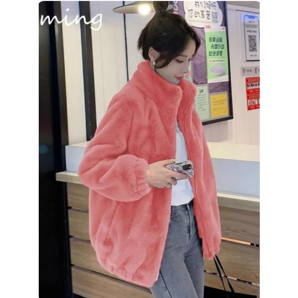 冬用コーラルフリース裏起毛厚手ジャケット レディース 両面フリースコート