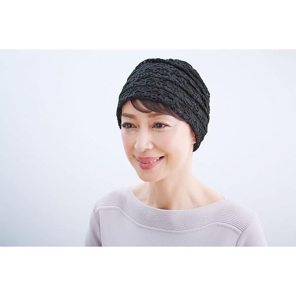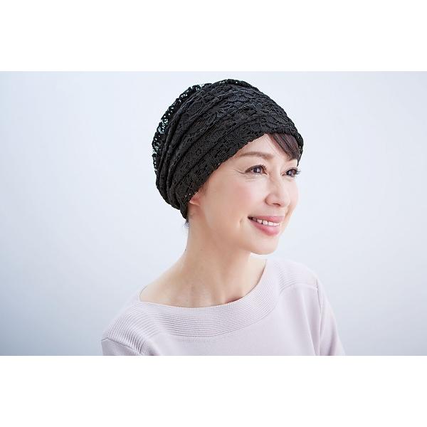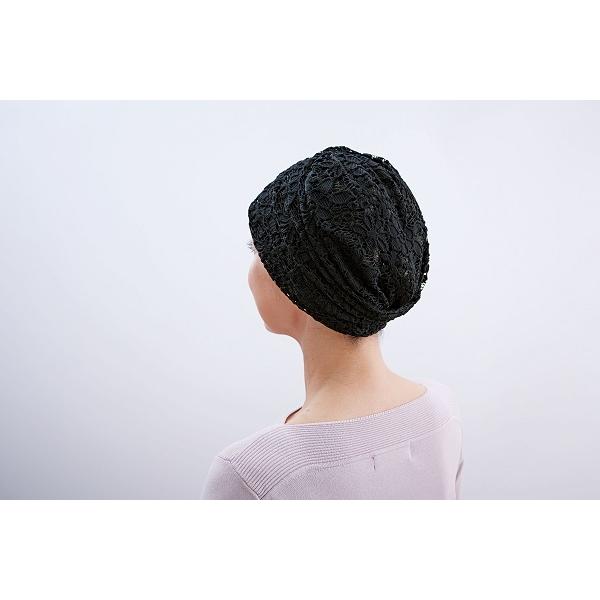 ボリュームレースヘアキャップすべりどめ付 ブラック コジット ヘアキャップ ヘアーキャップ レース 白髪隠し 急な来客 蒸れにくい レディース エレガント ムレにくい 福井 日本製 黒 医療用帽子