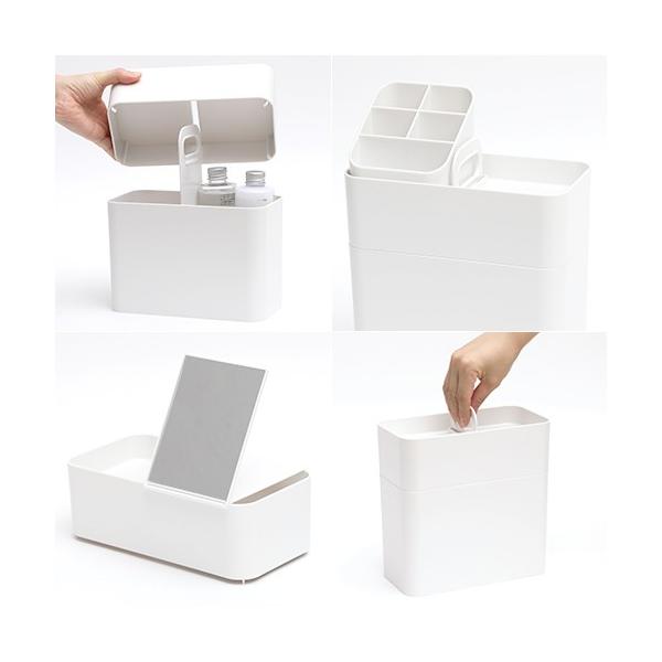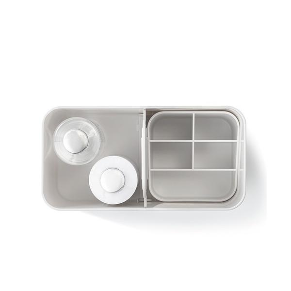 毎日のメイクに必要な道具をスマートに収納出来るアイテムです。立てて収納することで、見分けやすく、出し入れもスムーズ。持ち運びがしやすいようにハンドルも付いています。仕切りを取り外して中を洗うことも出来るので、清潔な状態が保てます。毎日使うものだからこそ、使い勝手にこだわっています。
