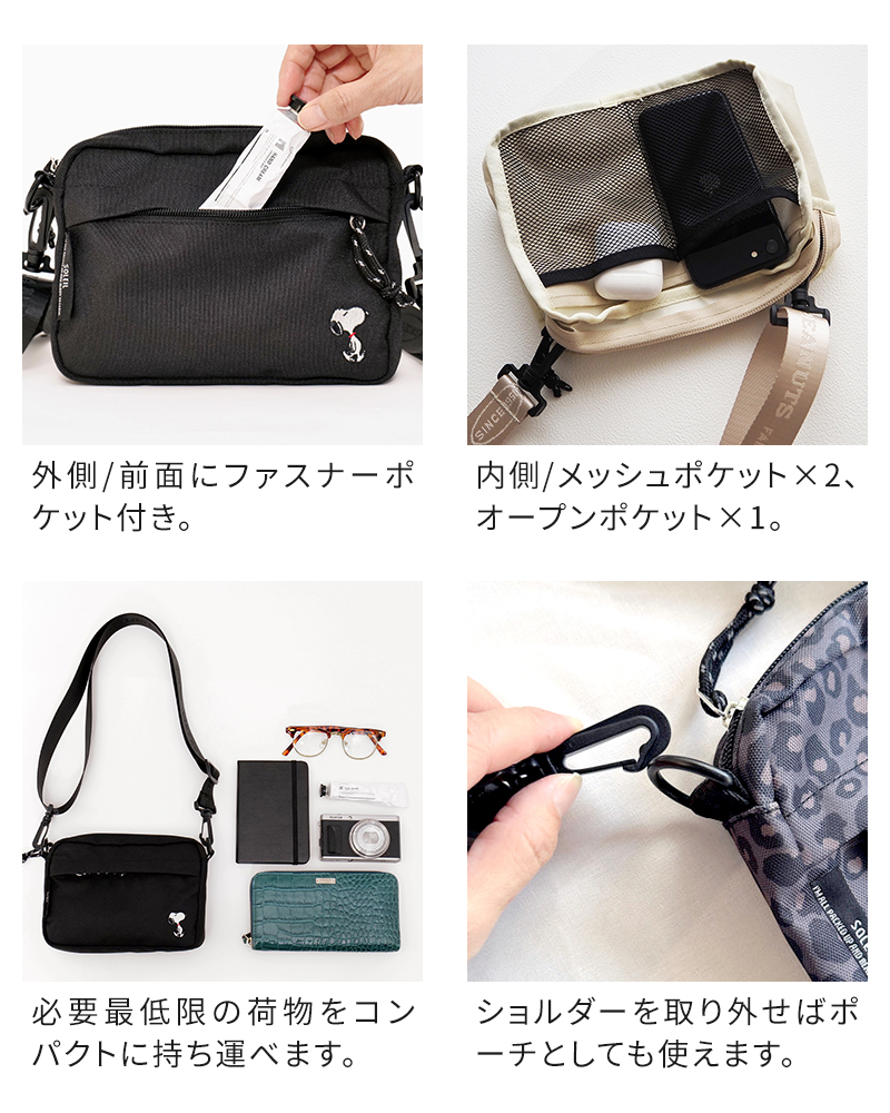 スヌーピー ショルダーバッグ ソレイユ PEANUTS PN/SOLEIL ミニショルダー 10852 10942 斜め掛け レディース コンパクト 小さめ ポーチ ポシェット ファスナー