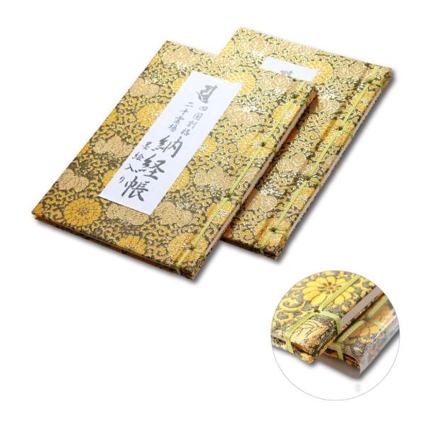 ●渋い緑地に金色の糸を使った金襴表紙の納経帳です。