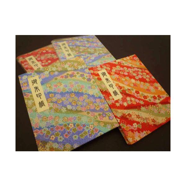 御朱印帳 ブック式 和綴じ カバー付 60ページ ちりめん 赤色