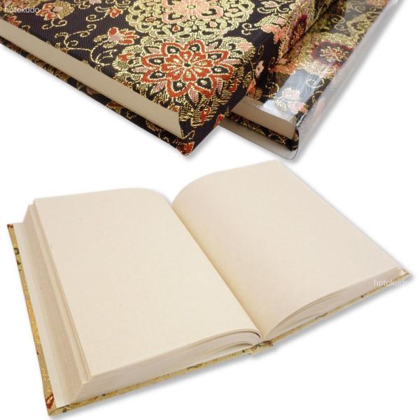 御朱印帳 ブック式 和綴じ カバー付 120ページ 華紋唐草 黒色