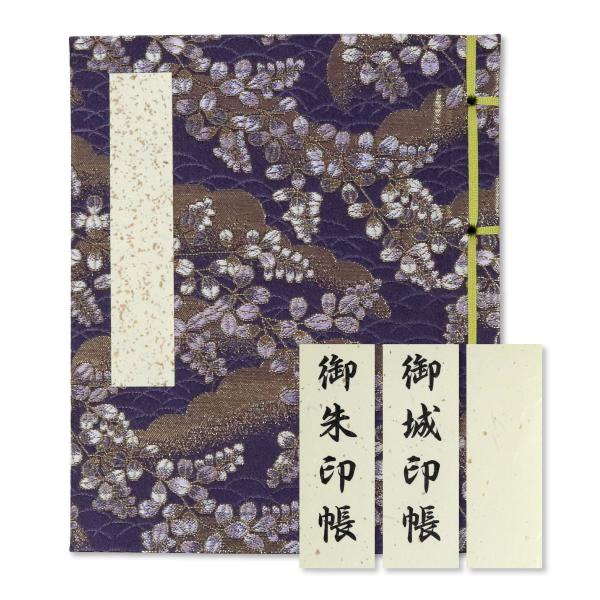 ・金箔柄入表題シール(文字なし)が貼られており、御朱印帳・御城印帳・無地の3種類のシールも付属しています。