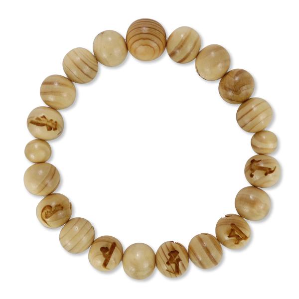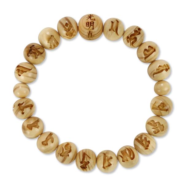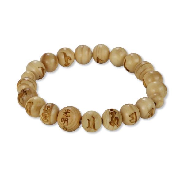 光明真言 彫り 10mm玉 ブレス 高野槇 念珠ブレスレット 内周18cm メール便送料無料