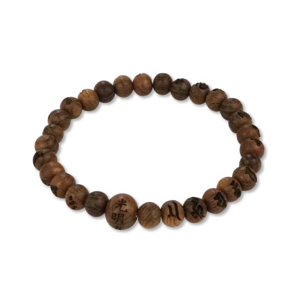 光明真言 彫り 8mm玉 ブレス 槐 えんじゅ 18cm 念珠ブレスレット メール便送料無料
