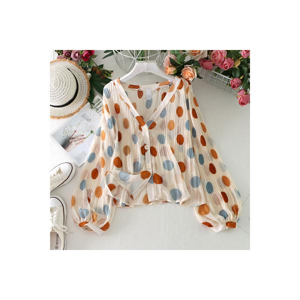 トップス 日焼け対策 可愛いドット柄 透け感 薄手 着痩せ 夏
