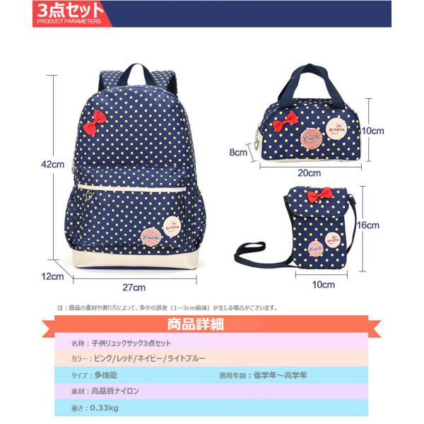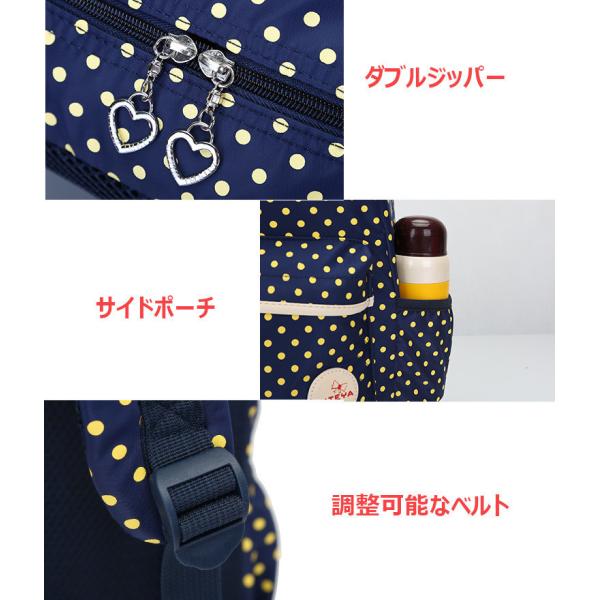 子供リュックサック 小学生バック 低学年 高学年 水玉柄 ドット柄 かわいい女の子バック 遠足 旅行