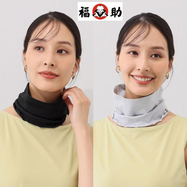 福助 日本製 UVカット キシリトール加工 ひんやり伸び〜る ネックカバー ブラック ライトグレー 単品