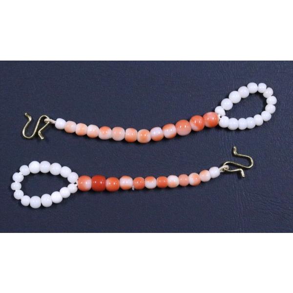 羽織り紐(ひも)・女性用・珊瑚orプラスチック・日本製・全長12cm・粒の大きさ約4mm・地色は白ピンク地です・お手元に届きましてイメージと違うようでしたら使用される前に至急ご返送ください。