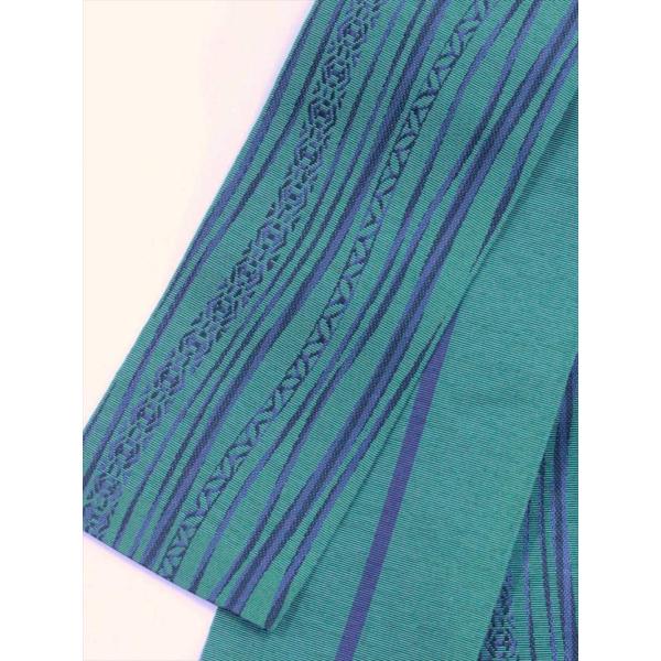 角帯・絹100%・両面(リバーシブル)・長さ4m15cm・巾9cm・重さ210g・博多織り・日本製。紋付・茶会・浴衣・紬・小紋・祭り・踊り衣裳の着物、袴下の帯にご利用ください。お手元に届きまして、イメージと違うようでしたら、使用される前に至急ご返送ください。地色はグリーン地です。