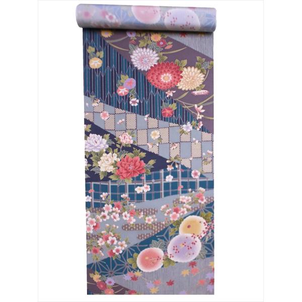 訳あり 難あり こども浴衣反物 3.8m No.713 ブルー地 すずめ 38cm×3.8m 1丈 レトロ 生地