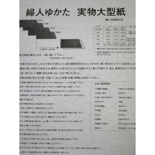 女性用浴衣型紙 S寸・M寸・L寸(丈と身幅がそれぞれ選べます)