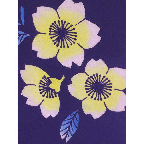 浴衣 反物 NO.223 濃紺地・サクラ柄・注染染め/耳あり