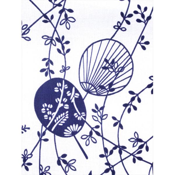 浴衣・反物・未仕立て品・綿100%・長さ12m・巾38cm・捺染(片面染め)・平織り・耳あり・日本製。浴衣・洋装・のれん・インテリア・和雑貨・各種カバー類など手芸の材料にご利用下さい。地色は白地に濃紺です。お手元に届きまして、イメージと違うようでしたら、裁断される前に至急ご返送ください。